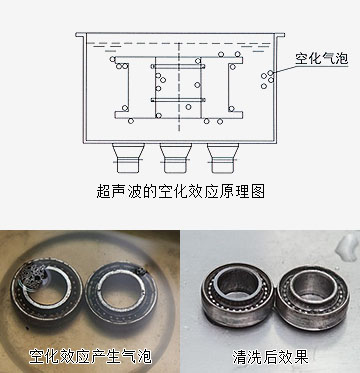 由超聲波發(fā)生器所發(fā)生的高頻振蕩訊號,通過換能器轉(zhuǎn)換成高頻機械振動而傳播到介質(zhì)中,超聲波在清洗液中疏密相問地向前輻射,當(dāng)聲波的壓強達到一定的大氣壓時,產(chǎn)生數(shù)以萬計的微小氣泡,這些氣泡在超聲波縱向傳播的負壓區(qū)形成、生長,而在正壓區(qū)迅速閉合。這種現(xiàn)象稱為超聲"空化效應(yīng)",產(chǎn)生氣泡時所需的壓力稱為超聲"空化閥值"。